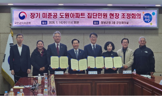 [뉴스다컴] 경상남도는 14일 오전 11시 창녕군청에서 열린 국민권익위원회 공동주택 집단민원 현장조정회의에서 장기 미준공 공동주택 문제해결을 위한 조정 절차에 참여했다고 밝혔다.