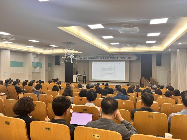 [뉴스다컴] 강원특별자치도교육청은 9월 30일 강원특별자치도교육청유아교육원에서 공립학교장 및 기관장 156명을 대상으로 산업안전보건 관리감독자 교육을 실시했다.