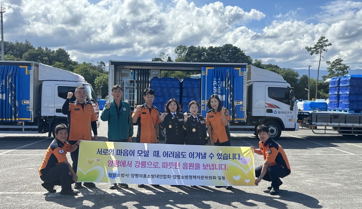[뉴스다컴] 강릉시의 가뭄 상황 극복을 돕고자 양평소방서·양평의용소방대연합회·양평소방정책자문위원회 일동은 23일 강릉시에 생수(2L) 9,840병을 기탁했다.