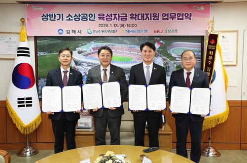 [뉴스다컴] 김해시는 13일 김해시청에서 NH농협은행, BNK경남은행, 경남신용보증재단과 ‘2026년 상반기 소상공인 지원 업무협약(MOU)’을 체결했다.