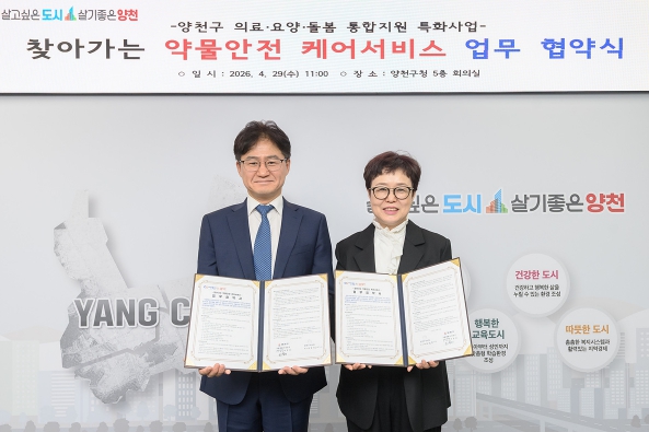 [뉴스다컴] 양천구는 29일 오전 구청 5층 회의실에서 양천구약사회와 ‘찾아가는 약물안전 케어서비스’ 추진을 위한 업무협약(MOU)을 체결했다고 밝혔다. 이번 협약은 약물관리가 필요한 취약계층을 대상으로 약사가 직접 가정을 방문해 맞춤형 서비스를 제공하는 양천구 통합돌봄 특화사업의 일환이다.
