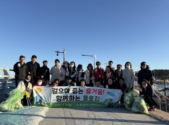 [뉴스다컴] 울산교육연수원은 지난 11일 북구 정자동 일대에서 ‘걸으며 줍는 즐거움! 함께하는 쓰담 달리기(플로깅)’를 주제로 환경 정화 활동을 했다.