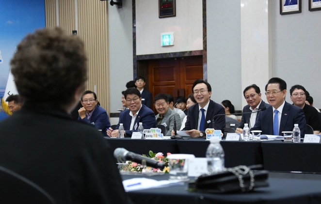 이어진 정책 토론에서는 시민들이 자유롭게 의견을 제시하고 김 지사가 직접 답변하며 높은 관심과 호응을 얻었다.
