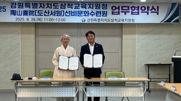 [뉴스다컴] 삼척교육지원청과 도산서원선비문화수련원은 8월 28일 삼척교육지원청 소회의실에서 ‘인성교육과 인문소양 함양을 위한 선비문화 체험연수 업무협약(MOU)’을 체결했다.
