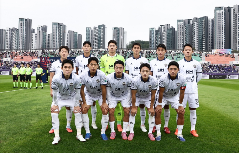 | ▲ 10월 18일 안양 원정에서 김천상무 선발 선수들이 사진을 찍고 있다 |