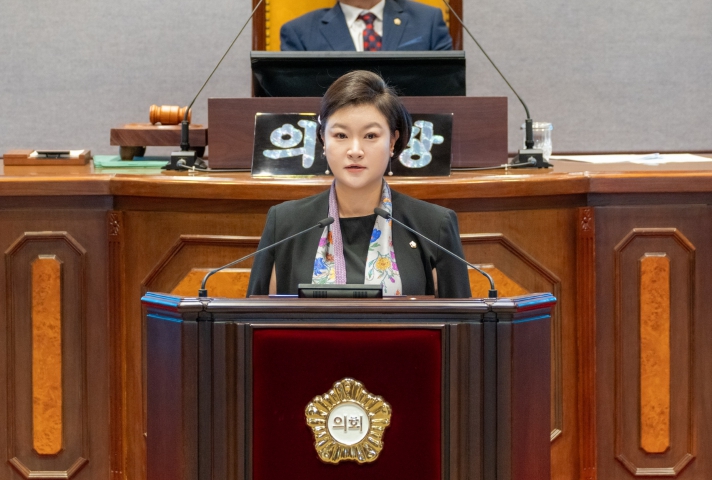 | ▲ 김현정 강남구의회 복지문화위원장이 제330회 임시회 제2차 본회의에서 5분 자유발언을 하고 있다. |