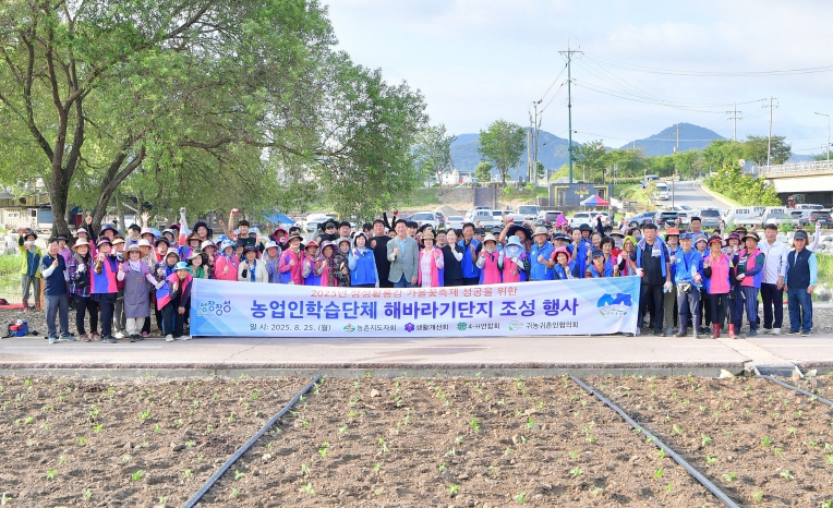 한국농촌지도자장성군연합회·한국생활개선장성군연합회·장성군4-H(에이치)연합회·귀농귀촌인협의회 회원 200여 명이 장안교~연꽃단지 일원에 모여 해바라기단지를 조성했다.