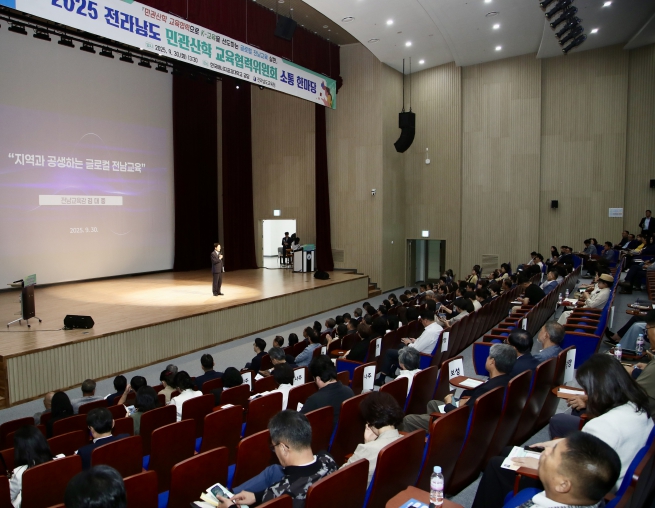 [뉴스다컴] 전라남도교육청은 9월 30일 나주 한국에너지공과대학교 강당에서 본청과 22개 교육지원청 민관산학 교육협력위원회 위원 500여 명이 참석한 가운데 ‘2025 민관산학 교육협력위원회 소통한마당’을 개최했다.