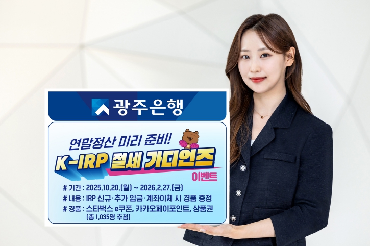 [뉴스다컴] 광주은행은 20일, 연말정산 시즌을 맞아 절세 혜택을 받을 수 있는 연금계좌 활용법에 대한 관심이 높아짐에 따라, 개인형 IRP(개인형퇴직연금) 고객을 대상으로 ‘K-IRP 절세 가디언즈’이벤트를 실시한다고 밝혔다.