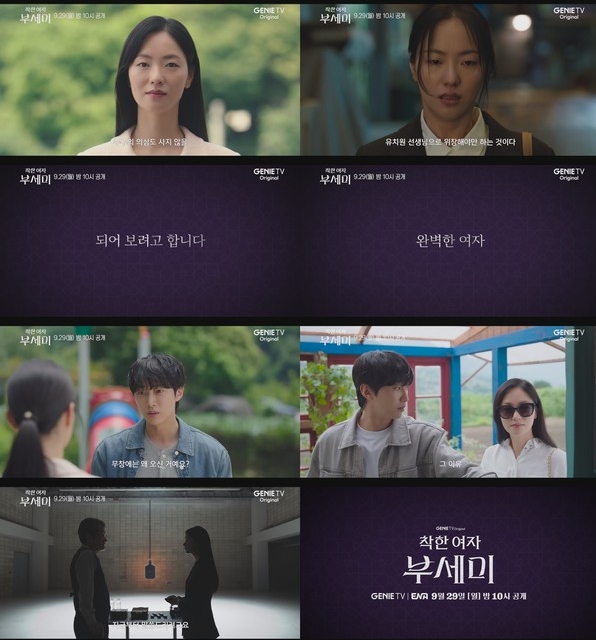 오는 9월 29일(월) 첫 공개될 지니 TV 오리지널 '착한 여자 부세미'(연출 박유영/ 극본 현규리/ 기획 KT스튜디오지니/ 제작 크로스픽쳐스, 트리스튜디오) 2차 티저 영상에서 완벽한 여자 부세미가 되기 위한 경호원 김영란(전여빈 분)의 변신을 예고하고 있는 것.