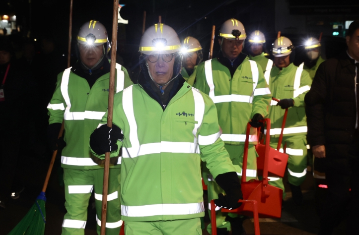 [뉴스다컴] 김민석 국무총리는 12월 26일 6시 30분경, 서울특별시 관악구 서원동 환경공무관 업무공간을 방문해 직접 거리를 청소하고 담소를 나누며 격려하는 시간을 가졌다.