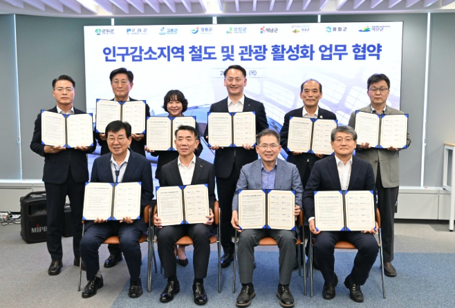 [뉴스다컴] 군위군은 8월 14일 한국철도공사(코레일) 및 8개 지자체와 ‘철도를 활용한 인구감소지역 관광 활성화 공동 업무협약’을 체결했다. 이번 협약은 철도망을 활용해 군위를 비롯한 여러 지역의 관광객을 유치하고, 지역 경제에 새로운 활력을 불어넣기 위해 철도 연계 관광상품 구성 및 운영, 공동 홍보 및 마케팅 강화를 주요 내용으로 한다.
