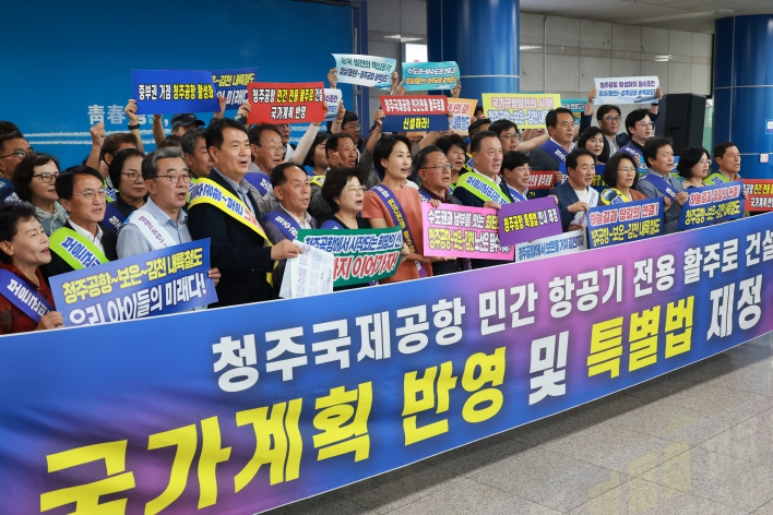 [뉴스다컴] 8일 휴가철 인파로 붐비는 청주국제공항에서 『청주공항 민관정 공동위원회(위원장 유철웅)』가 청주국제공항 관련 주요 현안사업을 조속히 추진하여 줄 것을 촉구하는 성명서를 발표했다.