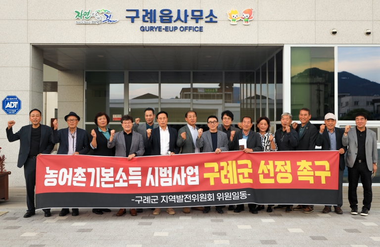 한편, 구례군은 이번 시범사업을 지역 발전과 주민 복지 향상의 절호의 기회로 보고 범군민 서명운동을 전개하고 있으며, 지난 9월 26일에는 농어촌기본소득 법안 입법 촉구와 시범사업 구례군 선정 촉구 결의대회를 진행한 바 있다.