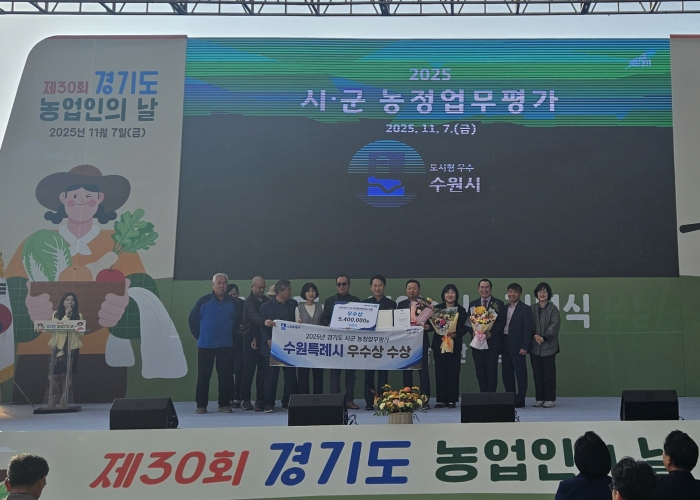 [뉴스다컴] 수원특례시가 경기도 시군 농정업무평가에서 우수상을 받았다. 시상식은 7일 국립농업박물관 광장에서 열렸다.