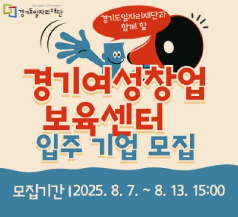 [뉴스다컴] 경기도일자리재단은 여성 창업 활성화와 유망 여성 창업기업 육성을 위해 ‘2025년 경기도여성창업보육센터 신규 입주기업 모집’ 공고를 지난 1일부터 게시하고 오는 8월 7일부터 8월 13일 오후 3시까지 접수받는다.