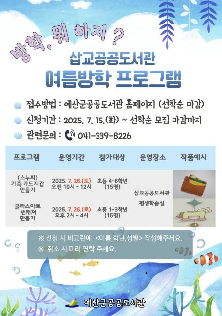 ▲ 2025년 삽교공공도서관 여름방학 프로그램 안내문 |
