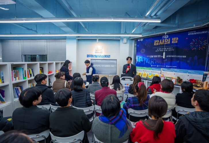 [뉴스다컴] 전남대학교 산학협력단 산하 광주청년일자리스테이션 동명이 지난 12월 16일 스테이션 동명에서 연말 성과 공유 행사 ‘2025 감사의 밤’을 열고, 한 해 동안 함께해 온 참여 청년들과 협력 기관 관계자들에게 감사의 뜻을 전했다.