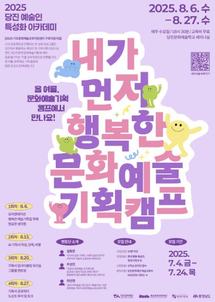 [뉴스다컴] (재)당진문화재단은 7월 4일부터 7월 24일까지 당진 내 문화예술 분야 관계자와 문화예술 기획자를 대상으로 ‘2025 당진 예술인 특성화 아카데미’ 수강생을 모집한다.