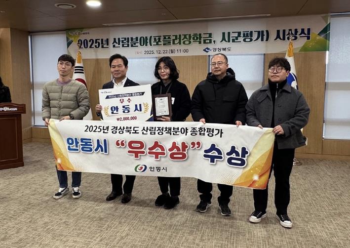 [뉴스다컴] 안동시는 경상북도가 실시한 2025년 ‘산림분야 종합평가’에서 산림정책 분야 ‘우수’, 산림소득 분야 ‘장려’를 수상하며 산림행정 전반의 추진 성과와 실행력을 인정받았다.