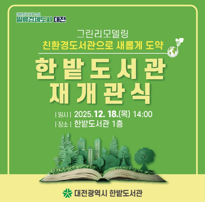 김혜정 한밭도서관장은“이번 그린리모델링이 단순한 시설 개선을 넘어 지역의 문화적 품격을 한 단계 높이는 새로운 출발점이 되길 바라며, 새롭게 단장한 한밭도서관이 시민의 일상에 따뜻한 쉼표가 되고, 꿈과 지혜를 키우는 울타리가 되기를 바란다”라고 말했다.