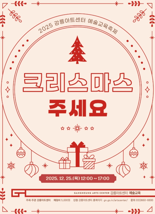 심규만 강릉아트센터 관장은 “연말을 맞아 시민들이 공연과 체험을 통해 일상 속에서 예술을 가까이 느끼는 시간이 되길 바란다.”고 밝혔다.