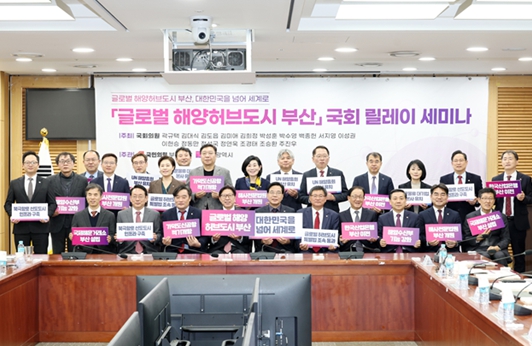 [뉴스다컴] 부산시는 오늘(17일) 오후 1시 30분 국회의원회관 제2소회의실에서 '글로벌 해양허브도시 부산' 국회 릴레이 세미나 2회차를 열고, '글로벌 해양허브도시 부산' 조성을 위한 공간 및 인프라 혁신 전략에 대해 논의한다고 밝혔다.