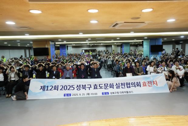 [뉴스다컴] 성북구 효도문화실천협의회가 10월 경로의 달을 앞두고 9월 25일 성북구청 다목적홀에서 ‘제12회 성북구 효도문화실천협의회 효잔치’를 열었다. 이날 행사에는 지역 독거어르신과 효행 표창자, 주민과 초청 인사 등 300여 명이 참석해 경로효친의 의미를 함께 나눴다.