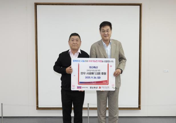 이날 영신축산은 추석 명절을 맞아 어르신들이 건강하고 행복하게 명절을 보내길 바라며 종로복지재단에 한우 사골 1.5톤을 전했다. 이웃사랑의 마음을 담뿍 담은 한우 사골은 관내 경로당에 골고루 배분할 예정이다.