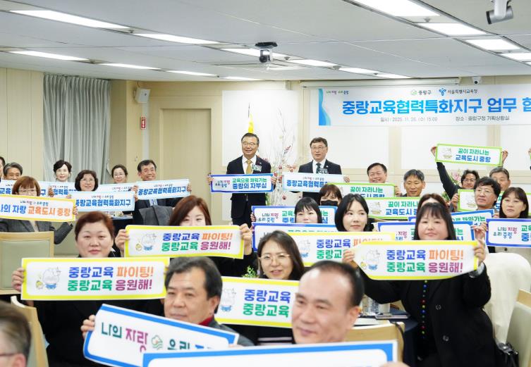 [뉴스다컴] 중랑구는 11월 26일 구청 4층 기획상황실에서 서울특별시교육청과 ‘중랑교육협력특화지구’업무협약을 체결했다. 이번 협약은 2019년 혁신교육지구, 2023년 미래교육지구 추진에 이어 지역 교육 협력사업을 확장하는 단계로, 구·교육청·학교 간 협력 구조를 체계화해 지역 기반 교육 환경을 강화하기 위해 마련됐다.