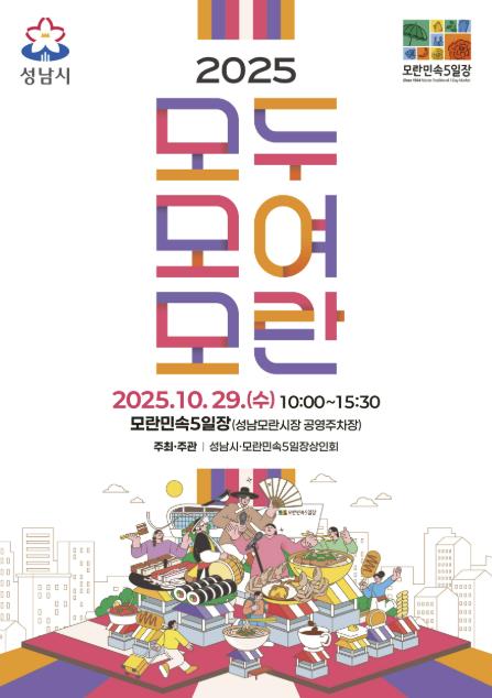 [뉴스다컴] 성남시는 오는 10월 29일 오전 10시부터 오후 3시 30분까지 모란민속5일장(중원구 둔촌대로 68)에서 ‘2025 모두모여모란’ 축제를 연다.