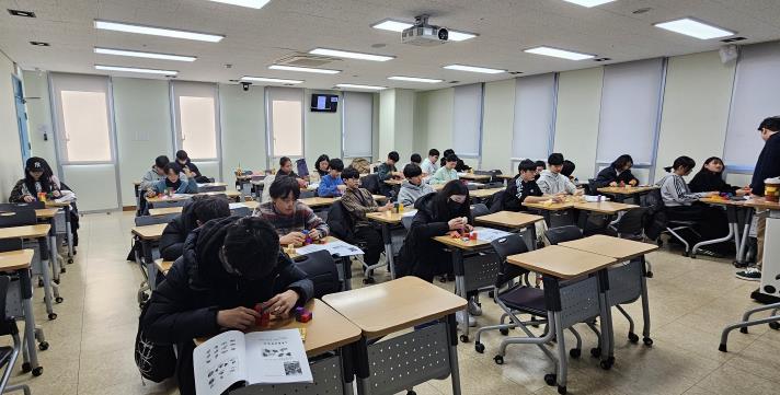 캠프 첫날에는 학생과 학부모가 함께 참석한 개회식이 열렸으며, 이 자리에서 프로그램 취지와 전반적인 운영 내용이 안내됐다. 이후 수업은 중학교 수학 교과서를 중심으로 핵심 개념과 학습 흐름을 살펴보는 방식으로 진행됐다. 학생들이 개념 간 연결 관계를 이해하고 중학 수학 전반의 구조를 파악할 수 있도록 사고 과정과 이해 중심의 수업 방식이 적용됐다.