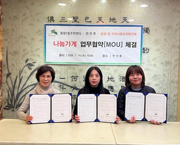 [뉴스다컴] 서울 은평구 응암1동은 지난 14일 관내 음식점 ‘만진루’와 지역사회 나눔문화 확산을 위한 ‘우리동네 나눔가게’ 업무협약을 체결했다고 밝혔다.