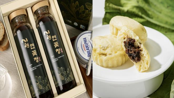 | ▲ 2025 시흥시 로컬-페어트레이드 제품개발(왼쪽이 연꽃청, 오른쪽이 연꽃빵) |