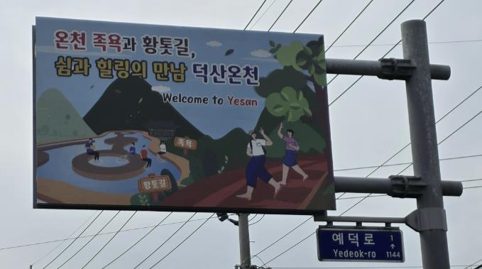 특히 ‘온천 족욕과 황톳길, 쉼과 힐링의 만남 덕산온천’이라는 문구는 군이 지향하는 치유와 휴식의 관광 이미지를 잘 보여준다는 설명이다.