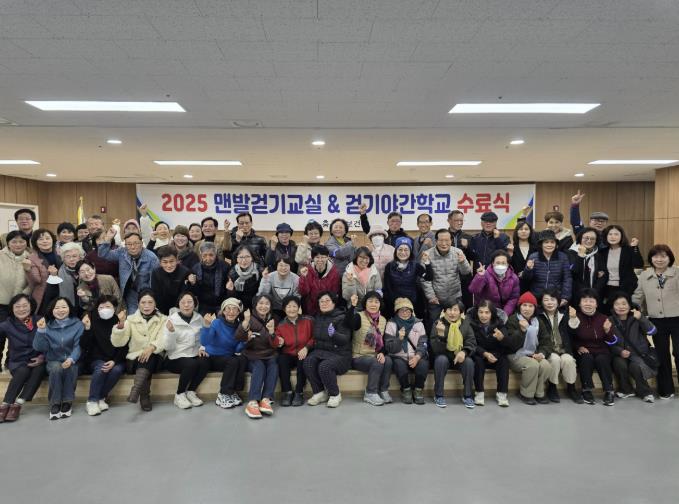 [뉴스다컴] 충주시는 시민들의 걷기 실천율 향상과 건강 증진을 위해 운영한 ‘신나는 맨발걷기 교실’과 ‘함께해요 걷기 야간학교’가 수료식을 끝으로 성황리에 마무리됐다고 밝혔다.