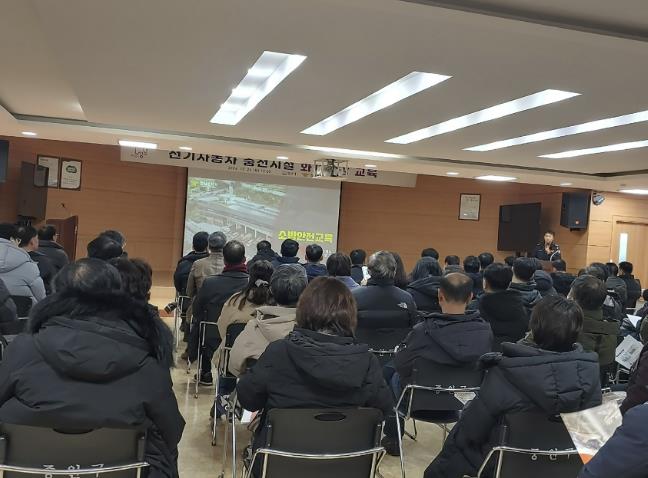 | ▲ 지난해 12월 중원구청에서 진행한 성남시 공동주택, 공중이용 시설 관리자 대상 ‘전기차 충전시설 화재예방교육’ 때(자료사진) |