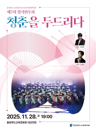 [뉴스다컴] 충청북도교육청 직속기관 교육문화원(원장 서종덕)은 28일 저녁 7시, 충북교육청 청소년국악관현악단이 교육문화원 대공연장에서 제7회 정기연주회 '청춘을 두드리다'를 열었다고 밝혔다.