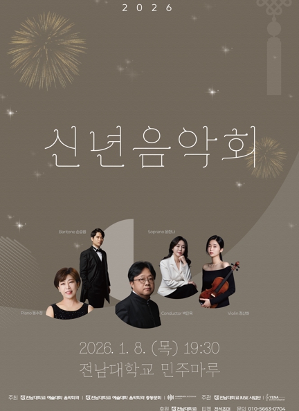 한편, 2026 신년음악회 티켓 예매는 네이버 예약을 통해 가능하며, 공연 관련 문의는 전남대학교 예술대학 음악학과(062-530-0390) 또는 예나엔터테인먼트로 하면 된다.
