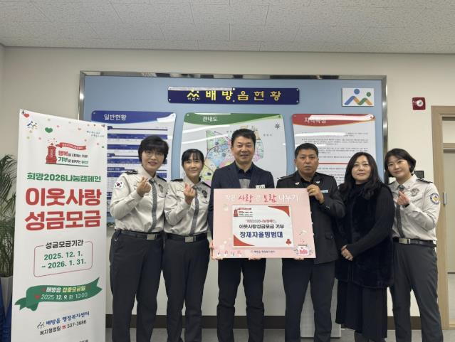 [뉴스다컴] 배방읍 장재자율방범대는 지난 15일 배방읍 행정복지센터에서 지역 내 어려운 이웃을 돕기 위한 ‘희망2026 나눔캠페인’에 동참해 성금 100만 원을 전달했다.