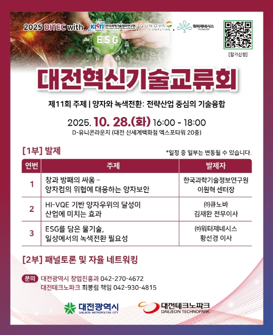 행사는 관심 있는 시민 누구나 참여할 수 있으며, 참가 신청은 네이버폼또는 포스터 상단 QR코드를 통해 가능하다. 자세한 사항은 대전테크노파크 기술사업화팀으로 문의하면 된다.