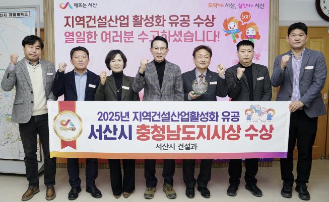 [뉴스다컴] 충남 서산시가 지난 2025년 지역건설산업 활성화에 기여한 공로를 인정받아 충남도로부터 지역건설산업 활성화 우수기관에 선정됐다고 밝혔다.