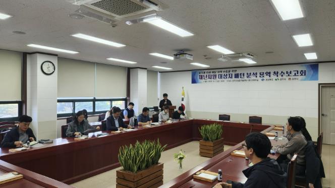 [뉴스다컴] 10월 17일 상주시농업기술센터 2층 소회의실에서 경상북도, 상주시 등 13명이 참석한 가운데 '농작물 재난지원 대상지 데이터분석 용역 착수보고회'가 개최됐다.