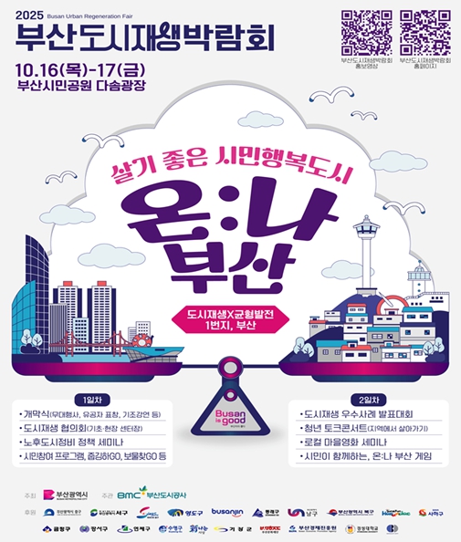 [뉴스다컴] 부산광역시는 오는 10월 16일부터 17일까지 이틀간 부산시민공원 다솜광장 일원에서 '2025년 부산도시재생박람회'를 개최한다고 밝혔다.