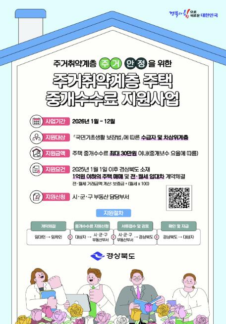 [뉴스다컴] 상주시는 주거 취약계층의 경제적 부담을 완화하고 안정적인 주거환경 조성을 위하여 2026년 1월부터 “주거 취약계층 주택 중개보수 지원사업”을 시행한다.