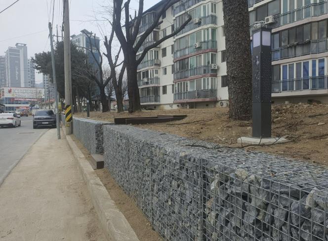 [뉴스다컴] 상주시 계림동에서는 인근 통행에 지장을 주던 냉림2주공아파트 주변 수목 전지와 함께 미관을 해치던 울타리를 철거한 후 조경용 게비온과 계단데크, 경관조명을 설치하는 등 냉림2주공 일원 도시미관 개선사업을 시행했다.