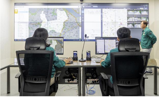 디지털 스크린 기반 통합관제를 통해 관내 교통 흐름, 기상 정보, 주요 시설 현황 등을 한눈에 확인할 수 있으며, 방범 CCTV와 연계된 스마트시티 통합플랫폼을 활용해 재난위험시설 및 취약지역을 실시간 모니터링하여 위험요소를 조기에 발견할 수 있다.