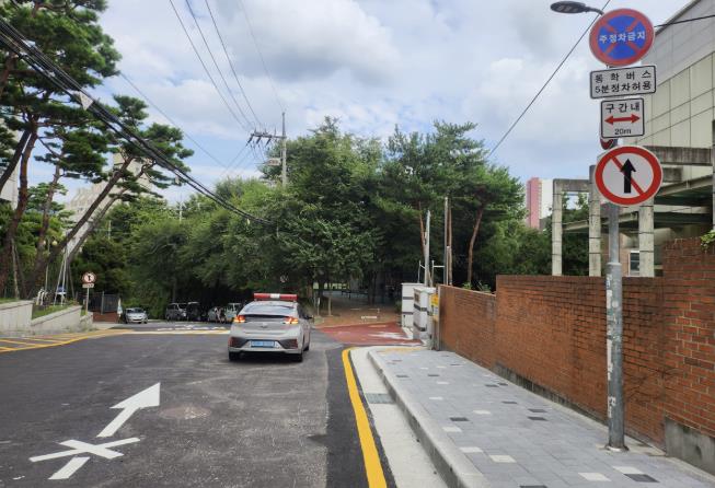 ▲ 안전한 통학 환경을 위해 새로 조성된 용산구 선린중학교 정문 앞 보도 |
