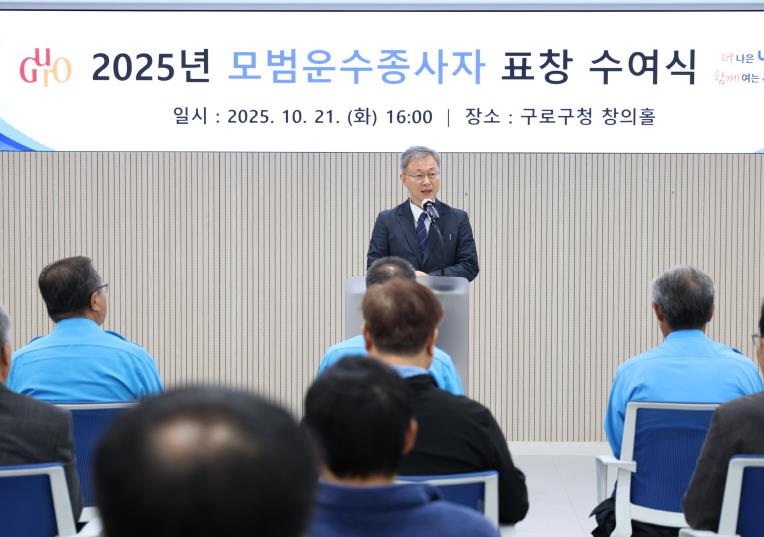 [뉴스다컴] 구로구는 21일 구청 창의홀에서 2025년 모범운수종사자 표창을 수여했다.