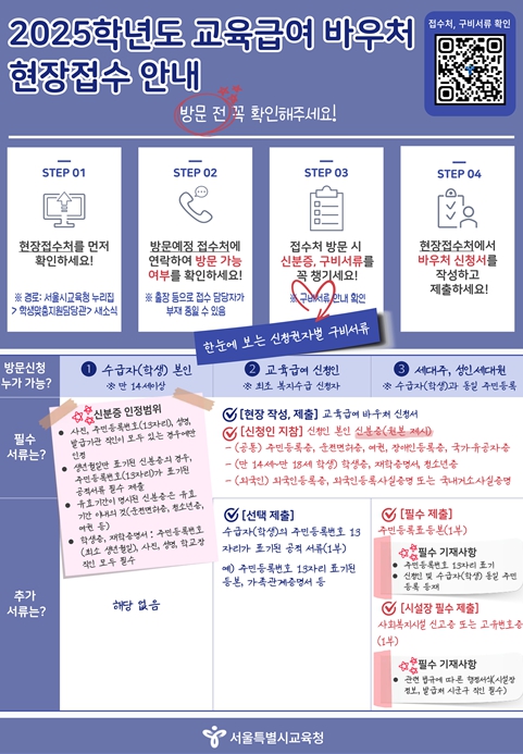 서울시교육청, 2025학년도 교육급여 바우처 현장 접수 운영